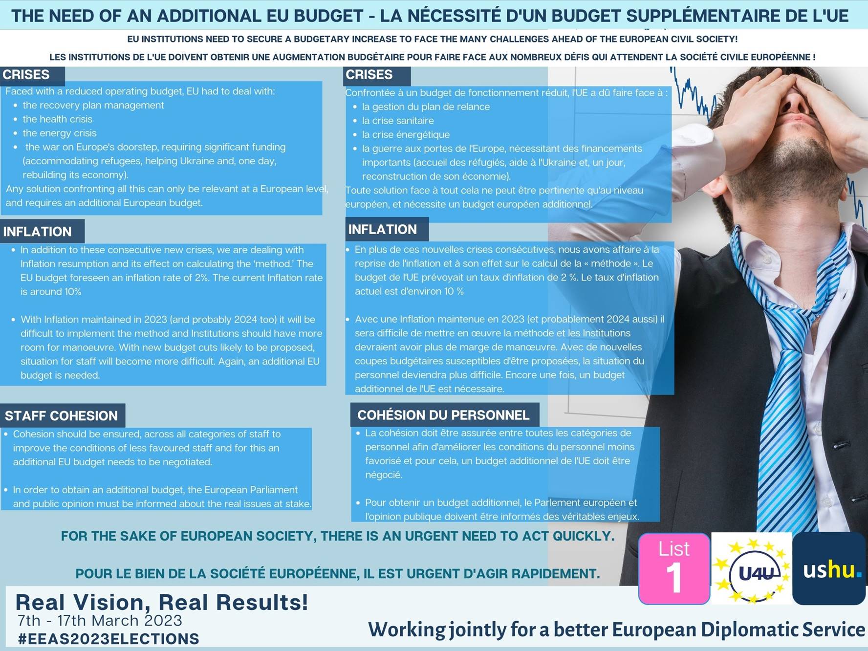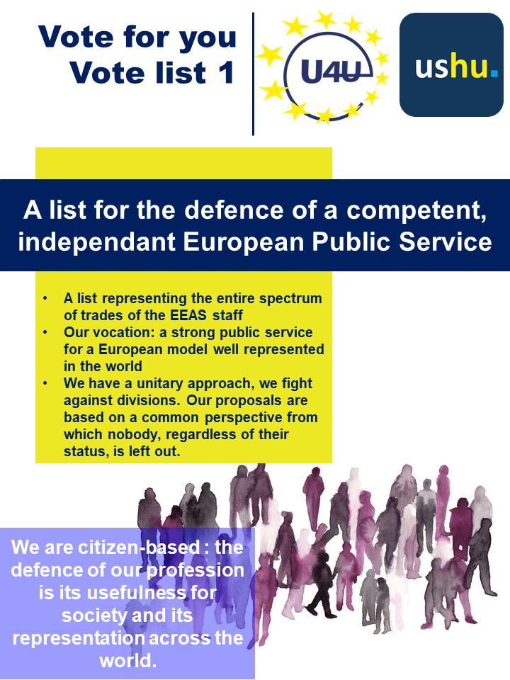 The EU needs and deserves an External Service that is efficient competent, committed and visible throughout the world. The current situation is disappointing and a source of frustration and demotivation for most of us. Let's work together to create a service Europeans can be proud of, a service that values and respects every individual and carries the EU's voice worldwide, loud and clear.