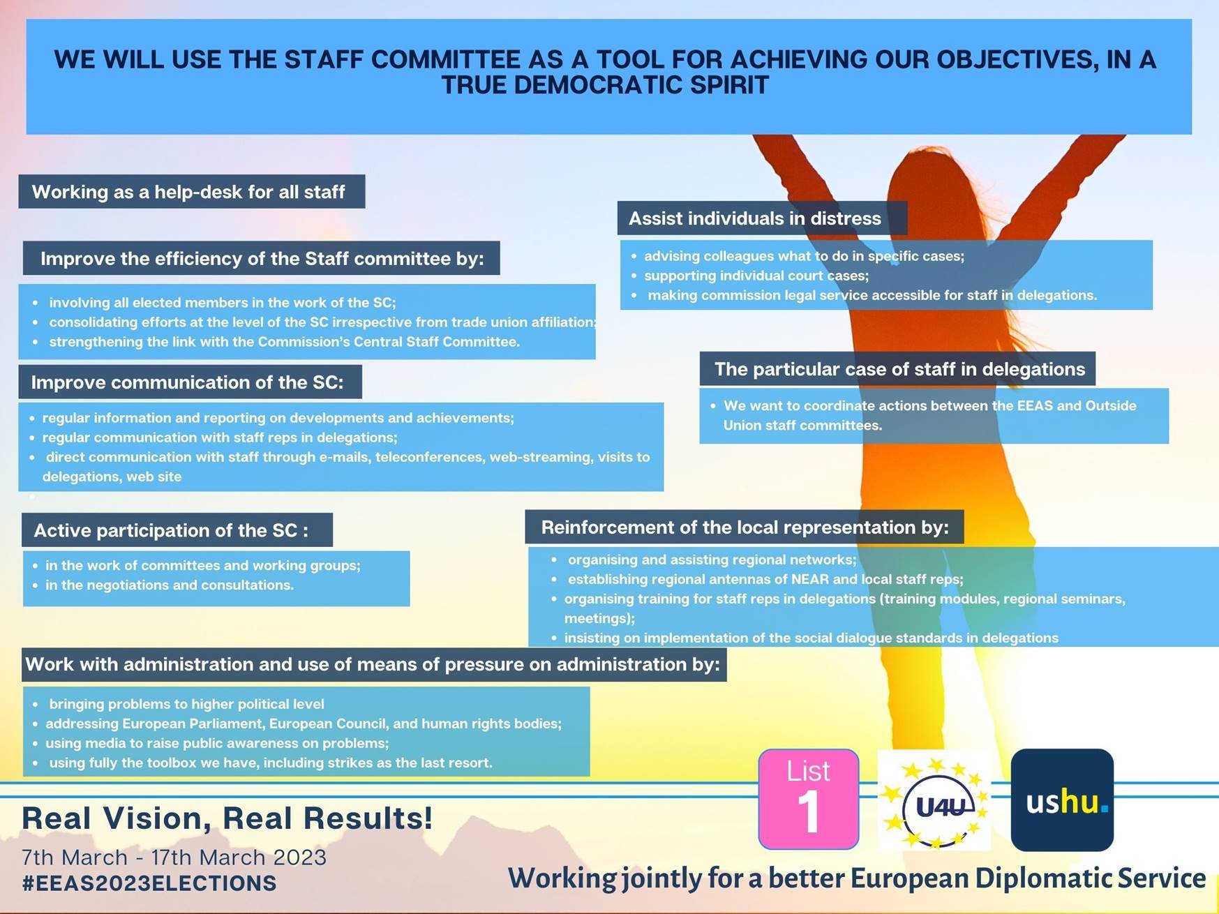 We will work together with other trade unions, within the Staff Committee and social dialogue, to achieve these goals.