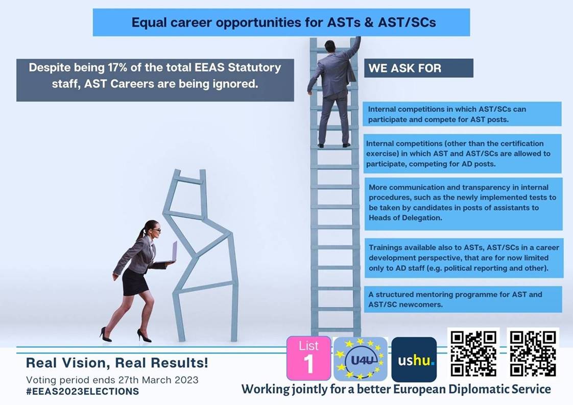 Based on their merit, EEAS should offer career opportunities at headquarters and delegations to staff in all categories: Officials, Temporary agents, Contract agents, Local agents.